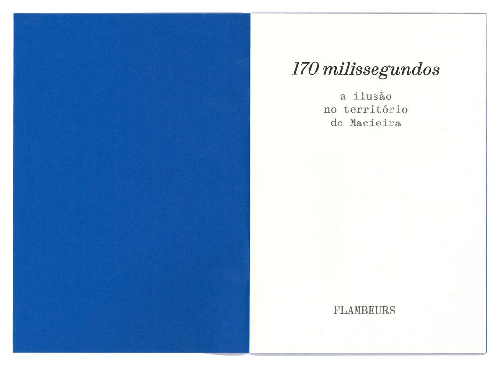 Desta residência resultou a publicação 170 milissegundos – a ilusão no território de Macieira, um exercício de aproximação entre o íntimo e a paisagem natural. Esta colaboração lúdica e familiar deu origem à recolha, organização e catalogação de formas diversas – observadas nos arredores da Escola da Macieira – construindo um possível dicionário visual. Através de um gesto livre, especulativo e combinatório, cada membro do coletivo estabeleceu relações próprias com as formas encontradas, propondo novas leituras do território.